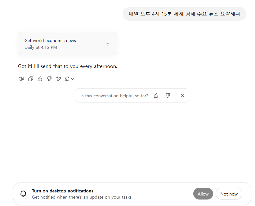 실제 사용해 보니 유용한 기능이라 앞으로 자주 사용할 것 같습니다. 나중에는 뉴스레터를 따로 구독할 필요 없이 ChatGPT만 사용해도 될 것 같네요.