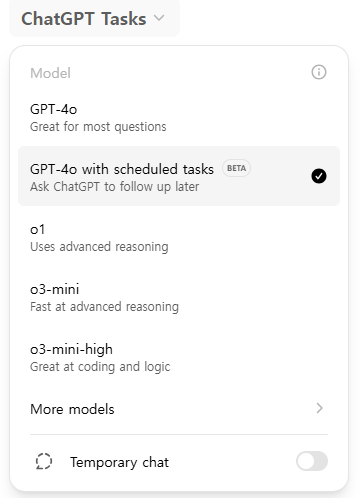 1. ChatGPT에서 GPT-4o with scheduled tasks(또는 GPT-4o 일정 예약)을 선택합니다.